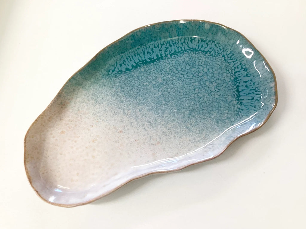 Bring coastal charm to your table with the Arcadian Dish. Finished with a reactive glaze, each piece boasts unique, ocean-inspired patterns. Perfect for serving snacks or as a decorative accent.
