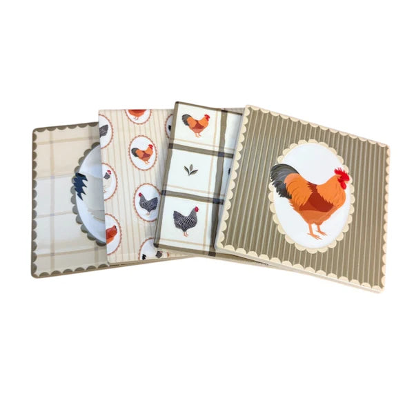 This set of Henny Ceramic Coasters in Olive features a stunning chicken design that is sure to add a touch of charm to any home.