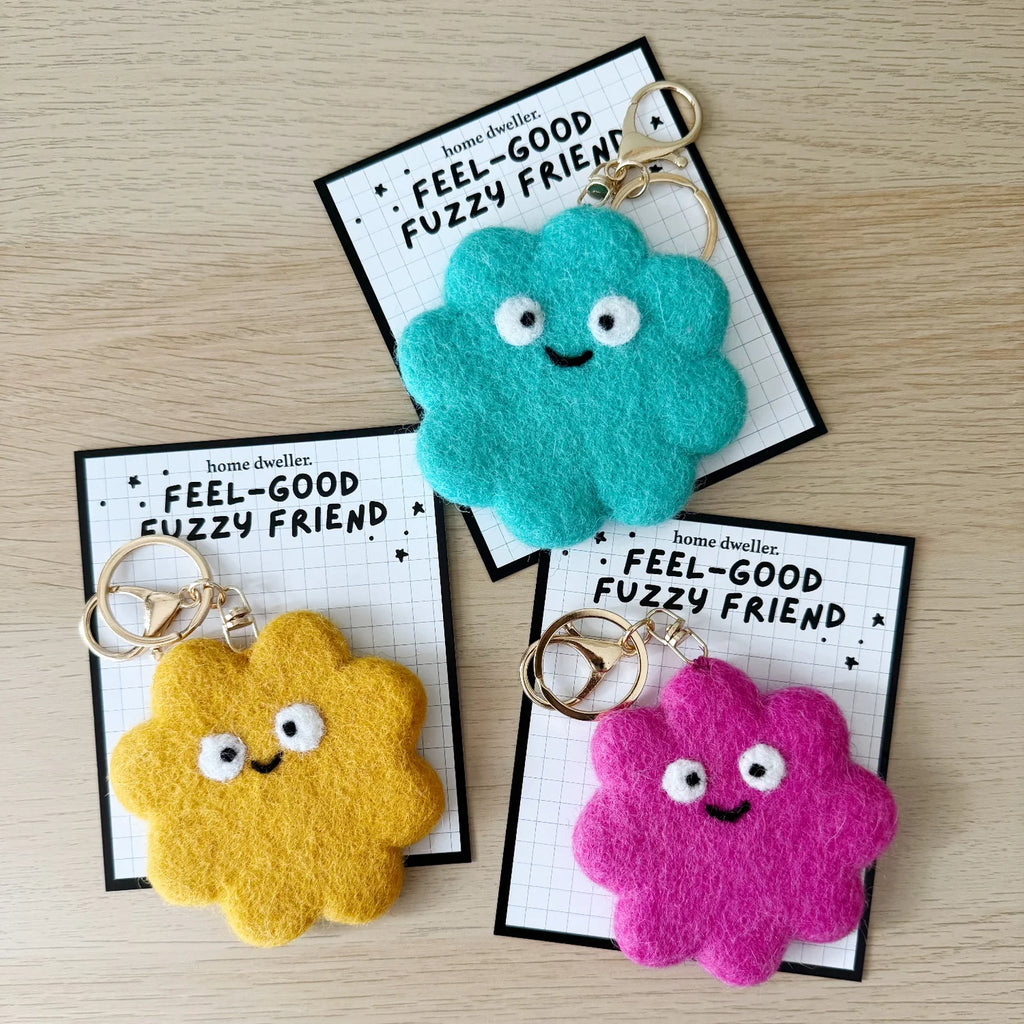 The Feel-Good Fuzzy Friend is a soft, comforting bag charm designed to help kids (and grown-ups too) feel calm, brave, and supported wherever they go.