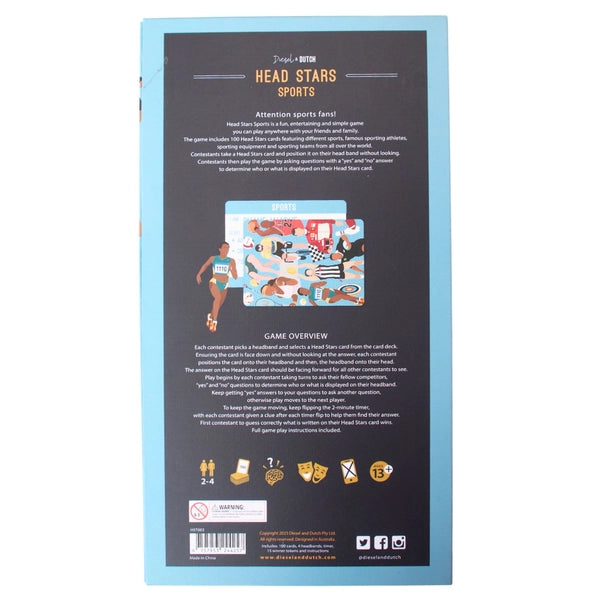 Head Sport Stars is a fun, entertaining and simple game you can play anywhere with your friends and family. The game includes 100 Head Stars cards featuring different sports, famous sporting athletes, sporting equipment and sporting teams from all over the world.